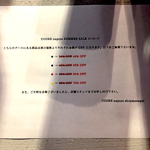 本日より CUORE 各店で開始された MORE SALE !!!!